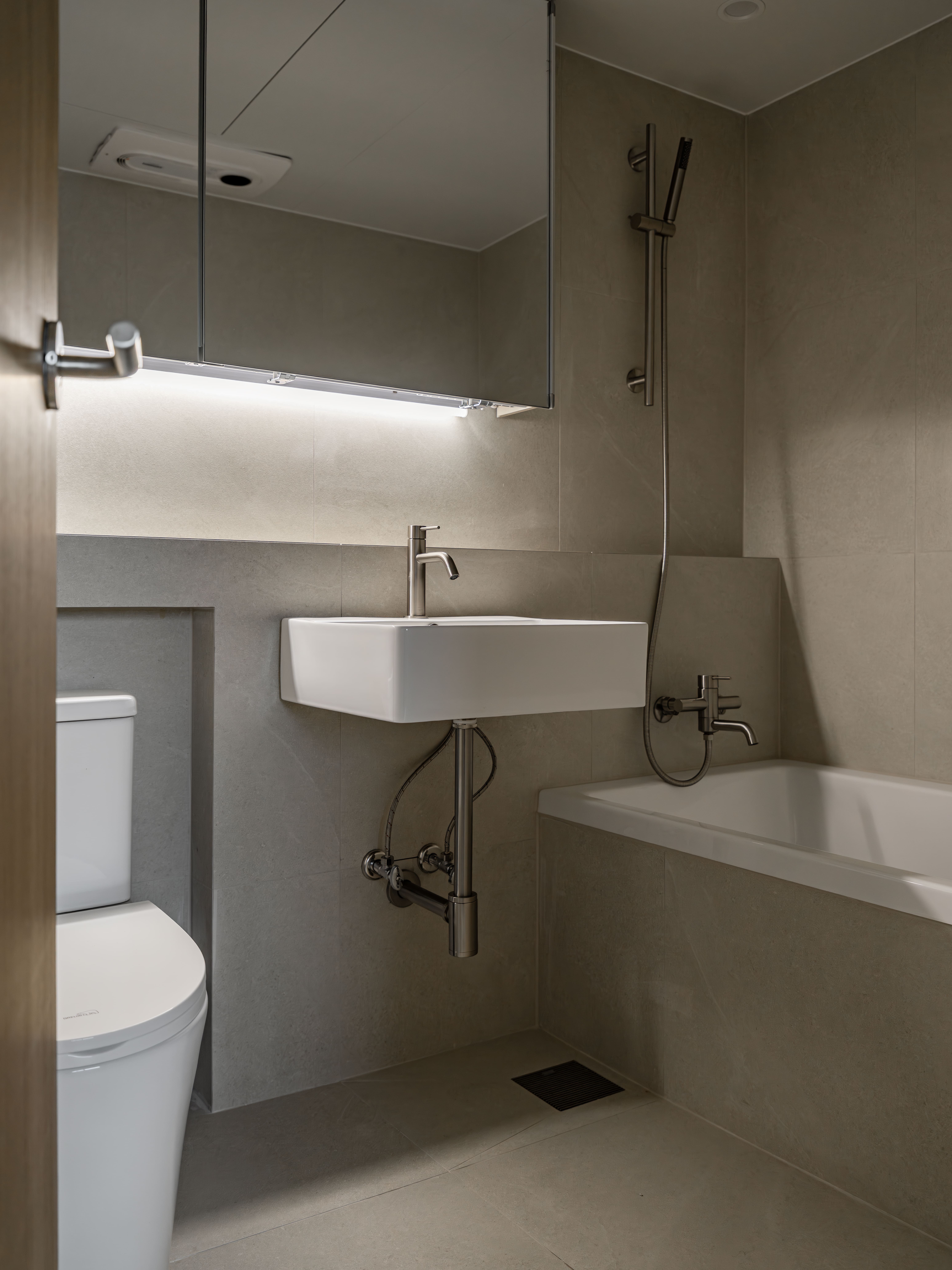 거실, 주방, 보조주방, 욕실 2개, 침실 3개로